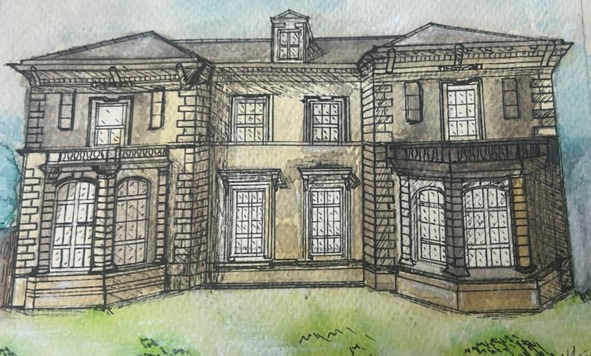 Springwell Hall, as it will soon appear, as a stand alone house. Painting by Chris Thornton.
